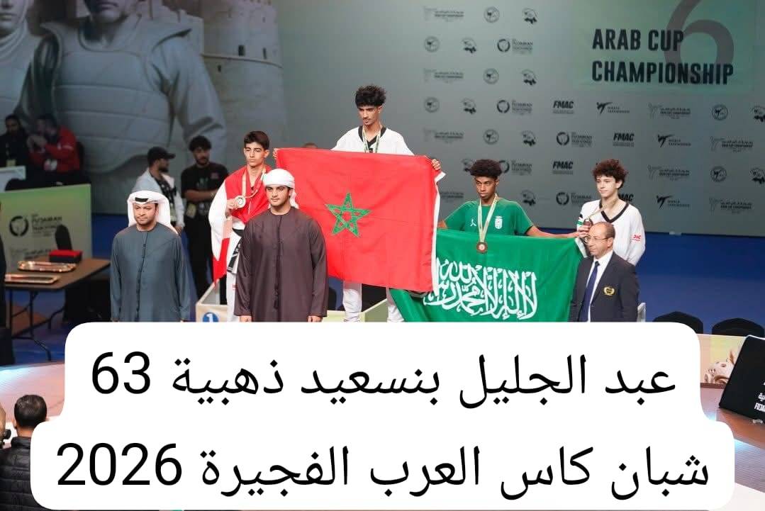 حقق المنتخب الوطني المغربي الأولمبي للتايكوندو نتيجة مميزة جدًا بحصد سبع ميداليات في النسخة السادسة من كأس العرب للتايكوندو، التي أقيمت يومي 7 و8 فبراير 2026 في مدينة الفجيرة بدولة الإمارات العربية المتحدة.