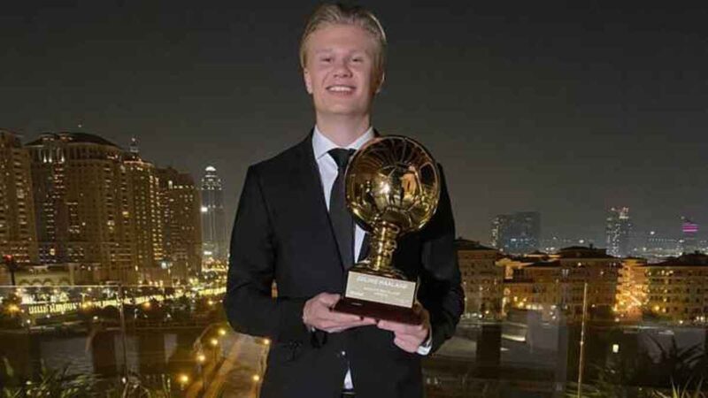 حصل إيرلينغ هالاند على جائزة اللاعب الذهبي في حفل “الفتى الذهبي” للعام 2023 في تورينو بعد فوزه بالثلاثية مع مانشستر سيتي في يونيو.
